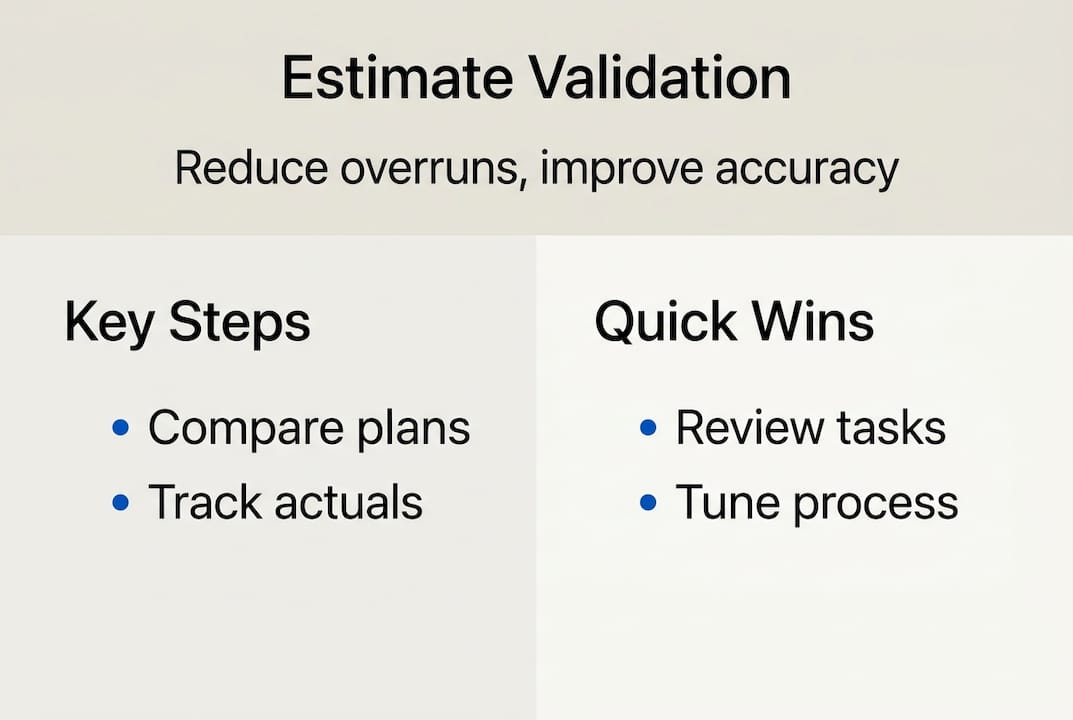 | Validation reduces overruns | Double-checking time estimates consistently leads to lower project delays. |
