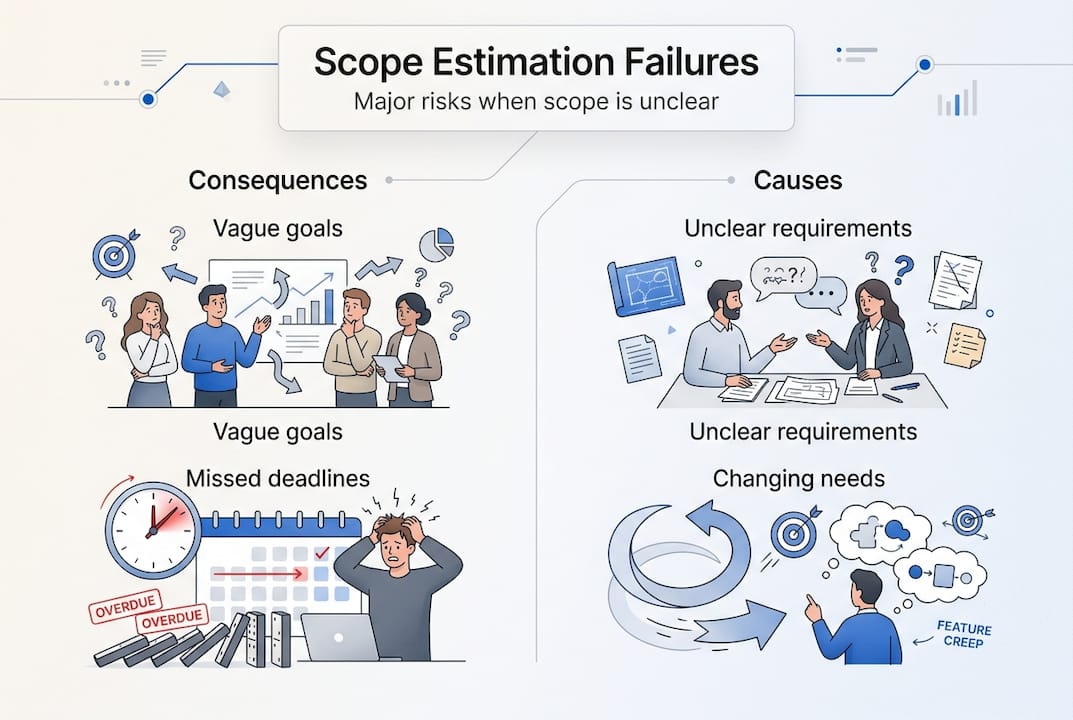 In web and mobile app development, estimation scope sets the stage for everything that follows. It determines how many developers you need, which technologies make sense, and how long each phase will take. Clear scope definition directly impacts time and budget accuracy for software projects. When stakeholders understand exactly what features make the cut and which ones don't, you eliminate the constant renegotiation that kills momentum.